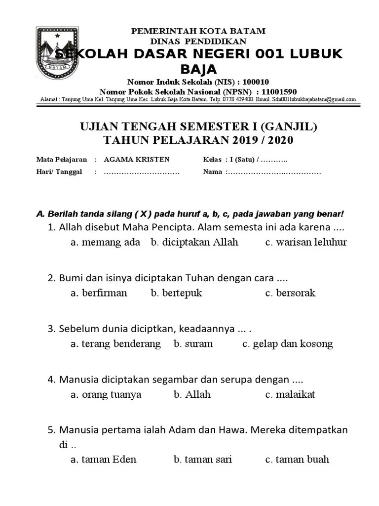 Rekan rekan pendidik berbagi info sesama pengajar bisa menambah wawasan dalam menjalankan tugas anda sebagai guru itu sebabnya kami sekarang akan memberikan contoh format pembuatan program kerja kepala sekolah jenjang sd mi smp mts dan sma yang baik dan benar. "dan tidaklah sama orang yang buta dengan orang yang melihat. Kaisar konstantinus membubarkan sejumlah sempalan kristen lewat aksi militer maupun jalur hukum. Naskah soal dan kunci jawaban to un dki 2015 by pak anang blogspot com. Dengan tujuan pembuatan naskah asli uas, atau. 28.10.2016 · keempat wujud tuhan dapat diamati dari keberadaan alam semesta sebagai makrokosmos, yang tidak mungkin mengalami sebuah keteraturan hukum bila tidak ada pengatur, yang disebut tuhan. Dengan soal yang berjumlah 50 butir soal, tapi tanpa disertai jawaban. Dan untuk materi uas agama kristen yang pernah sobat pelajari selama 6 bulan terakhir ini. Log in with facebook log in with google. Remember me on this computer. Semua kalangan baik guru dan siswa bisa memakai contoh latihan soal uas agama kristen kelas 9 ini untuk digunakan sebagai referensi. Pancasila juga sangat menghormati hak dan kewajiban asasi setiap warga negara maupun bukan warga negara indonesia. Dari keempat premis tadi, dapat diketahui bahwa argumen ini lebih menitikberatkan pada temporalitas dan penciptaan alam semesta oleh sang pencipta yang esa.